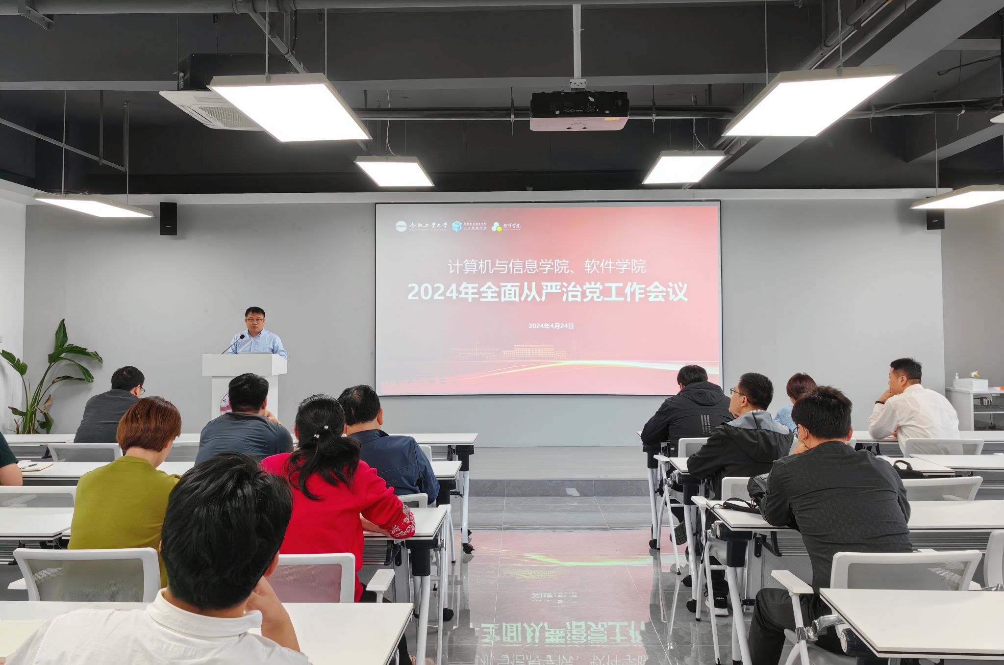 年永琪传达了学校2024年全面从严治党工作会议精神,总结回顾了学院2023年全面从严治党和党风廉政建设工作,并就2024年重点任务进行了部署。他指出,2024年是中华人民共和国成立75周年,是凝心聚力高质量推进“十四五”建设的关键一年,抓好全面从严治党工作尤为重要。结合会议主题,就纵深推进学院全面从严治党工作提出四点要求。一是统一思想认识,提高政治站位。要深学悟透习近平总书记关于党的自我革命的重要思想,学以致用、知行合一,始终保持全面从严治党永远在路上的清醒和坚定。二是强化履职担当,压实主体责任。要明确全面从严治党的职责和任务,党员干部要率先垂范,明责于心,履责于行,推动学院全面从严治党向纵深发展。三是筑牢廉洁防线,深化作风建设。要以高度的政治责任感和历史使命感,不断加强自身建设,提高拒腐防变的能力,打造风清气正的政治生态和育人环境。四要聚焦中心工作,推动落实见效。要以担当作为、狠抓落实的决心,扎扎实实干好每一项工作,助推学院高质量发展,以优异成绩迎接学校第九次党代会的召开。