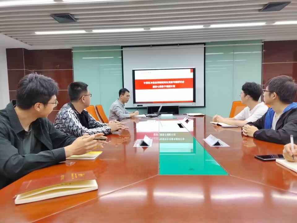 在翡翠科教楼A1104召开了研究生党建专题研讨会暨第七期骨干领航培育计划,研究生辅导员黄鹏飞、全体研究生党支部书记参会。