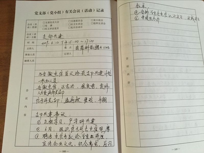 6月12日下午,91网址 信号与信息处理研究所党支部与安徽电信人力资源党支部洽谈支部共建计划。信号所党支部书记张海燕,组织委员翟琰,支部成员牛朝,安徽电信人力资源党支部汪志浩、程良君、袁炜参与讨论会。