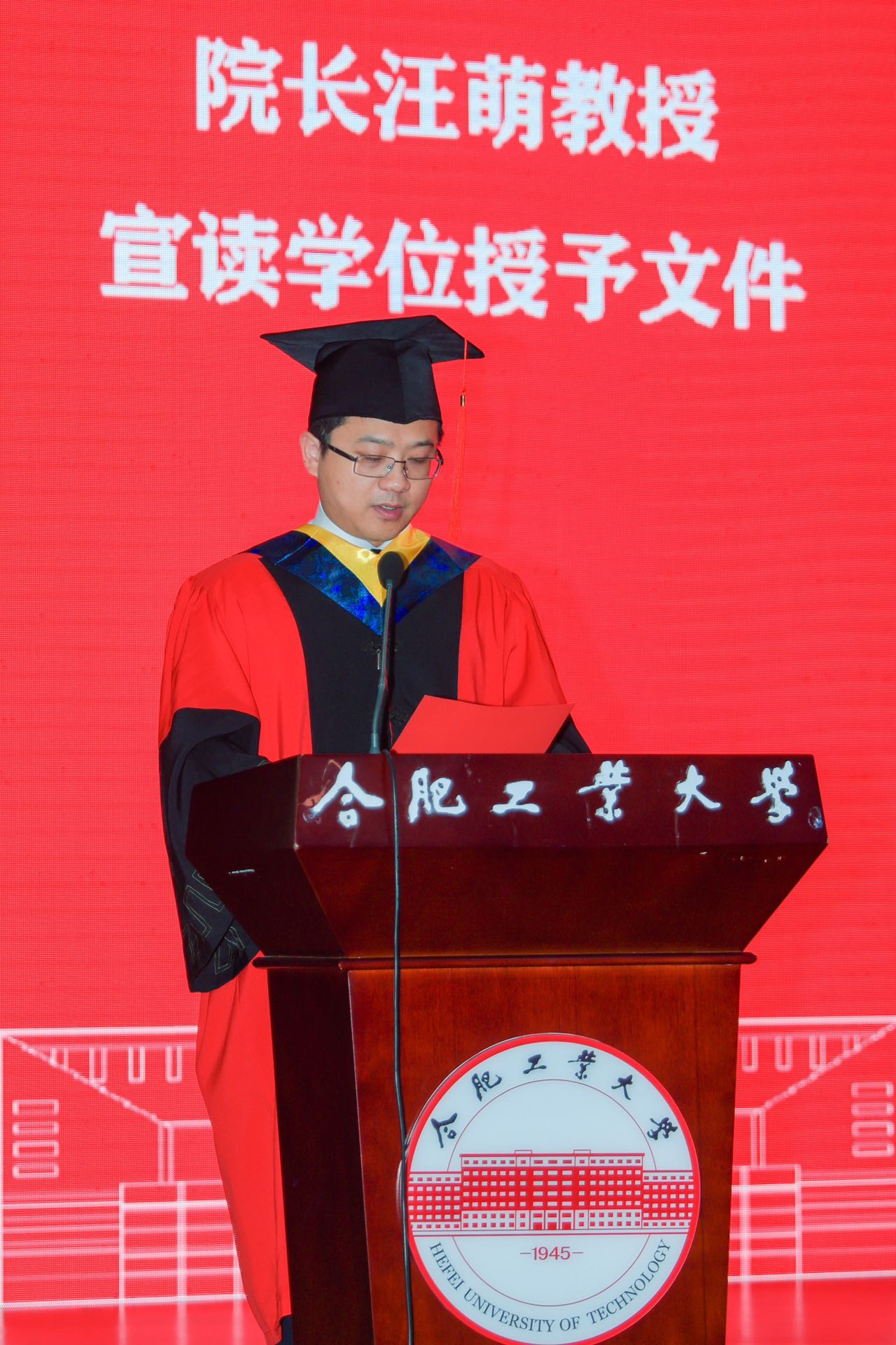 汪萌教授宣读学位授予决定