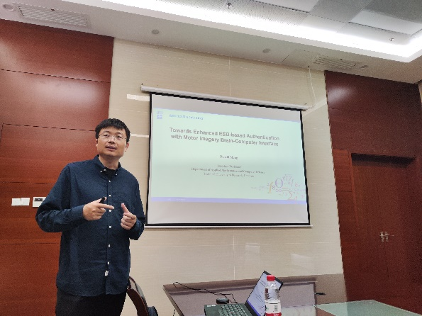 师生做了题为“Towards Enhanced EEG-based Authentication with Motor Imagery Brain-Computer Interface”的学术报告。李萌老师主持了本次报告会,学院相关研究方向的老师和学生参加了报告会。