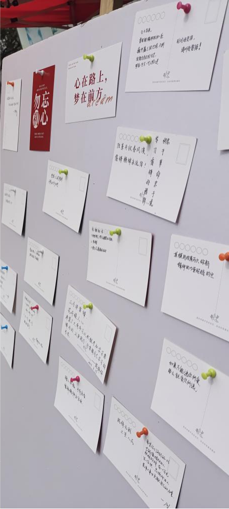 为调动同学们的积极性,通过游戏志愿盲盒的形式开展互动。提前在盲盒箱内放置学习雷锋精神的任务的字条,参与者抽取字条,完成对应的任务,就可以获得纪念礼品一份。任务涵盖了为学校的后勤工作人员送水,编辑一条关于学习雷锋精神的朋友圈,写一张弘扬雷锋精神的明信片等。许多同学参与其中,现场氛围热烈。通过现场体验,同学们体会到志愿服务他人的喜悦,更深刻的理解雷锋精神,参与活动的同学在留言墙上写下感悟,充分表达了对雷锋同志的敬意,传承雷锋精神的决心。
