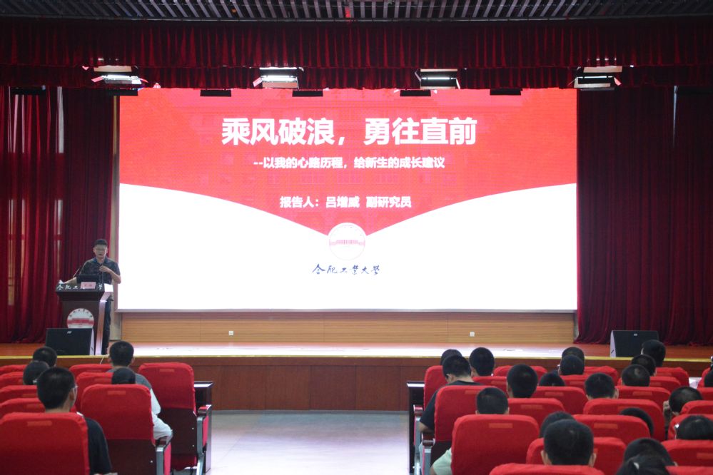 优秀毕业生吕增威老师做了题为《乘风破浪,勇往直前》的分享报告,以自身的求学心路历程,给2022级新生分享了大学期间的规划和建议。学院2022级班主任、年级辅导员和2022级新生参与此次活动。