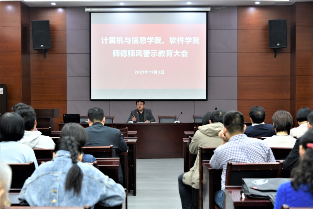 (人工智能学院)、软件学院在翡翠科教楼第五会议室召开师德师风警示教育大会,学院全体教职工参加了本次大会,学院党委书记年永琪主持会议。