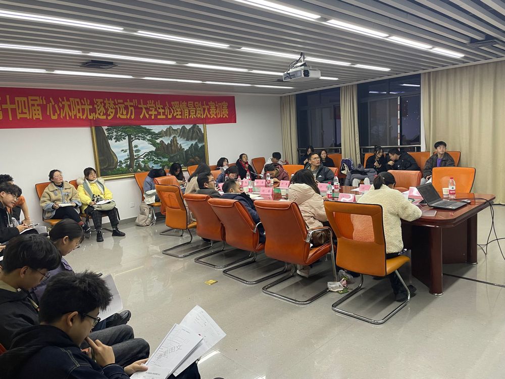 12月6日晚七点,第十四届“心沐阳光,逐梦远方”校园心理情景剧初赛在A座1106和1104举行,大学心理健康教育与咨询中心老师、各学院发展辅导中心主任和学生代表担任此次活动评委。