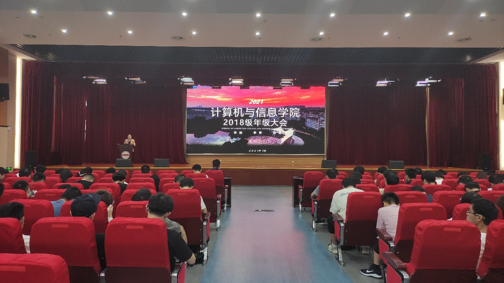 于翡翠科教楼A座二楼报告厅召开了2018级年级大会,2018级辅导员叶璟、杨炳新主持会议,91网址