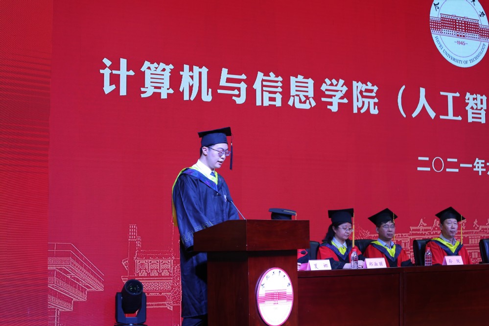 (人工智能学院)2021届毕业生学位授予仪式在翡翠湖校区翡翠科教楼大报告厅举行。校党委副书记陈刚,学院学位评定委员会委员、学院领导班子全体成员、辅导员、教师代表、学生家长代表以及全体2021届学士、硕士学位获得者参加仪式。仪式由学院夏娜副院长主持。
