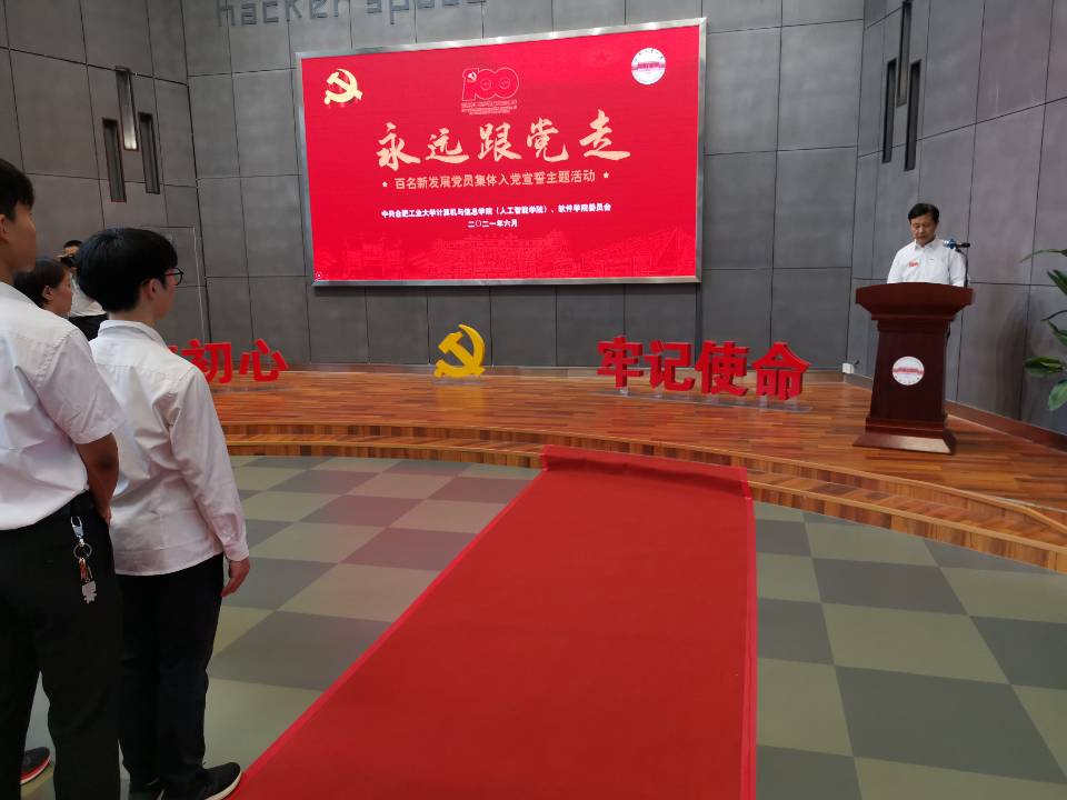 (人工智能学院)、软件学院组织开展了“永远跟党走”百名新发展党员集体入党宣誓仪式。学院相关辅导员、2021年新发展党员参加了集体入党宣誓仪式。