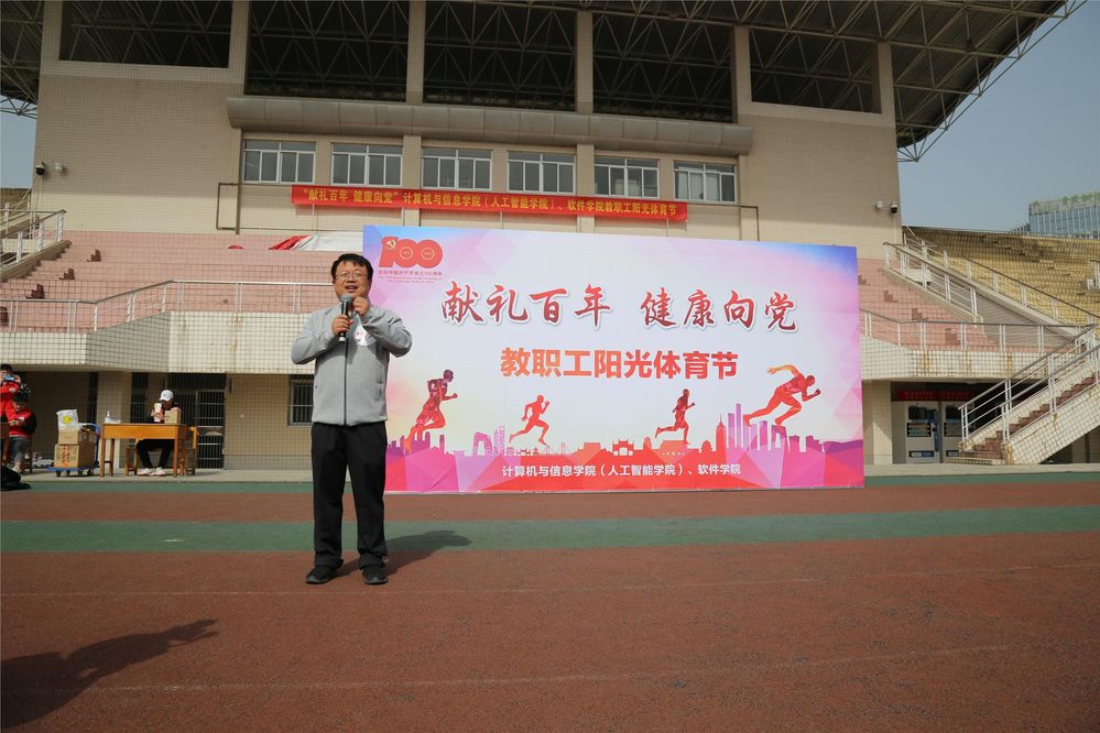 (人工智能学院)、软件学院在翡翠湖校区风雨操场举行了“献礼百年,健康向党”教职工阳光体育节活动。学院相关负责同志、160余名教师参加了活动。活动开幕式由学院副书记储文静主持。