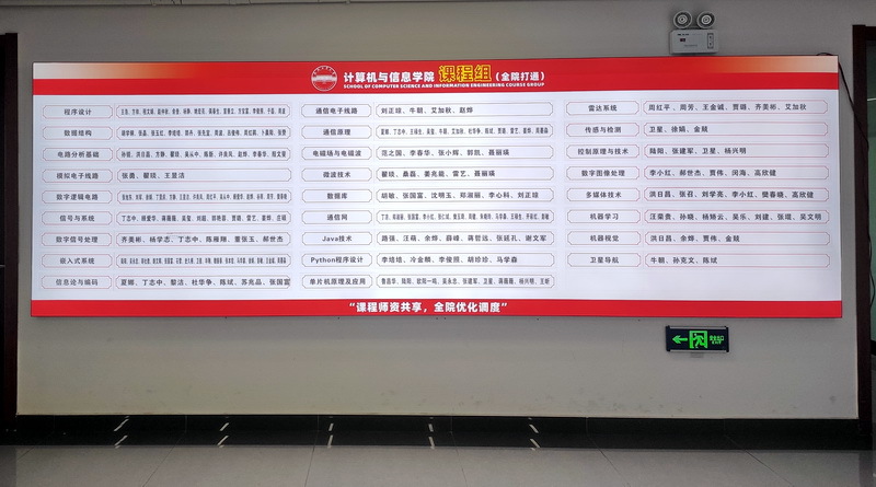 下图为“课程组”信息展示墙(学院11楼)。