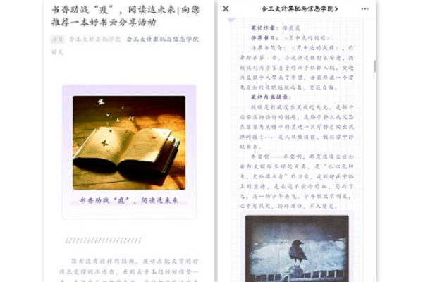 本次读书月线上系列活动共包含“向您推荐一本好书” 图书云分享活动、“书香溢校园,雅言映人生”优秀读书笔记征集活动和“疫”点微光,大爱前行抗疫故事征集活动三个子活动。“向您推荐一本好书” 图书云分享活动旨在发挥朋辈引领作用,激发学生的读书兴趣,积淀人文底蕴,营造书香氛围;“书香溢校园,雅言映人生”优秀读书笔记征集活动帮助学生深刻感悟新时代“抗疫”时期典型人物和事迹所体现的“舍小家为大家”的社会责任与担当,增强学生爱国情怀;“疫”点微光,大爱前行抗疫故事征集活动是帮助学生更好的看到抗疫人物事迹下的“真、善、美、爱、乐、新”,从中学习抗疫人物所展现出来的优秀品质。