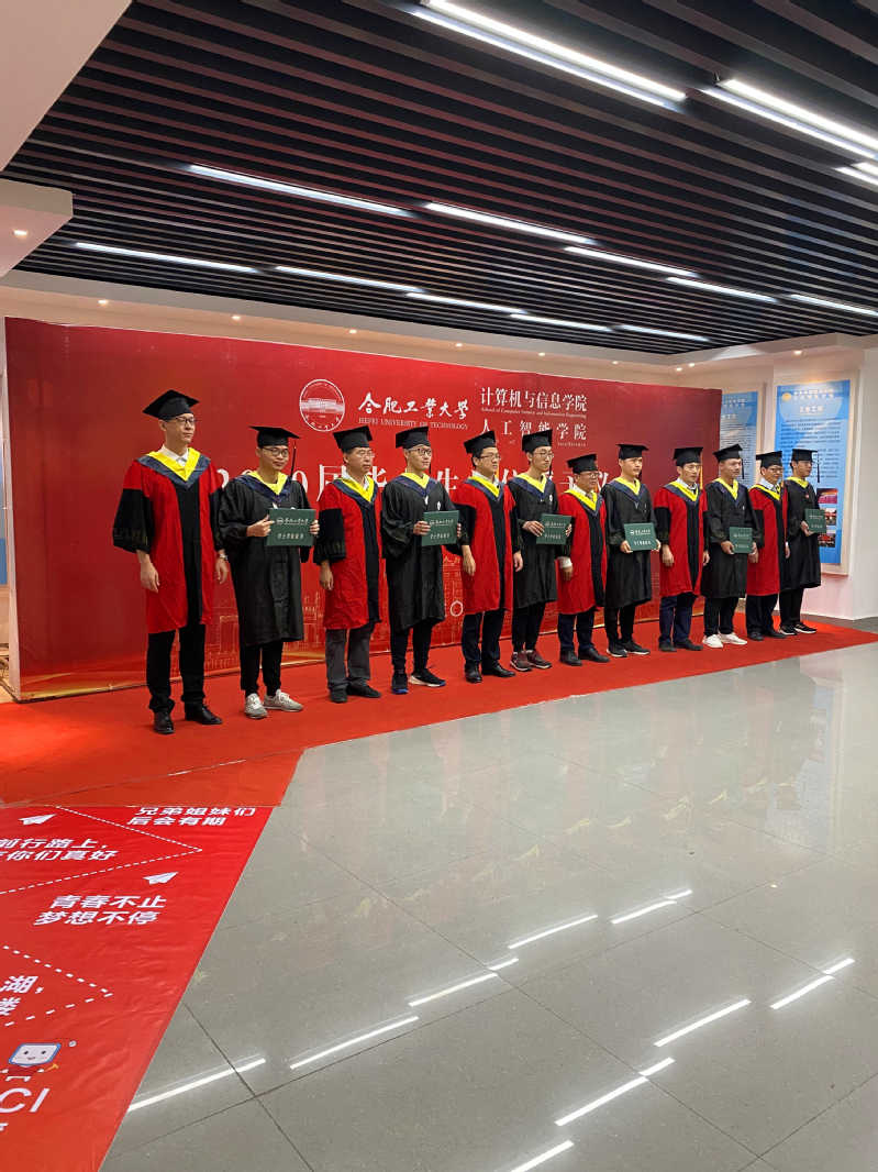 6月21日上午,在科教楼11楼隆重举行学院2020届学生毕业典礼暨学位授予仪式。学院党委书记年永琪、院长汪萌、副院长洪日昌、系主任齐美彬、安鑫和孙锐出席仪式。在神圣庄严的气氛中,毕业生们身着学士袍,依次走上登上受礼台,从老师手中接过学士学位证书,接受领导和老师拨穗正冠,授予学位。授予仪式结束后,学生们齐聚东风广场合影留念。随后,同学们纷纷前往专属的毕业纪念墙前,用一张张照片记录下自己的欢笑、祝福和感动。