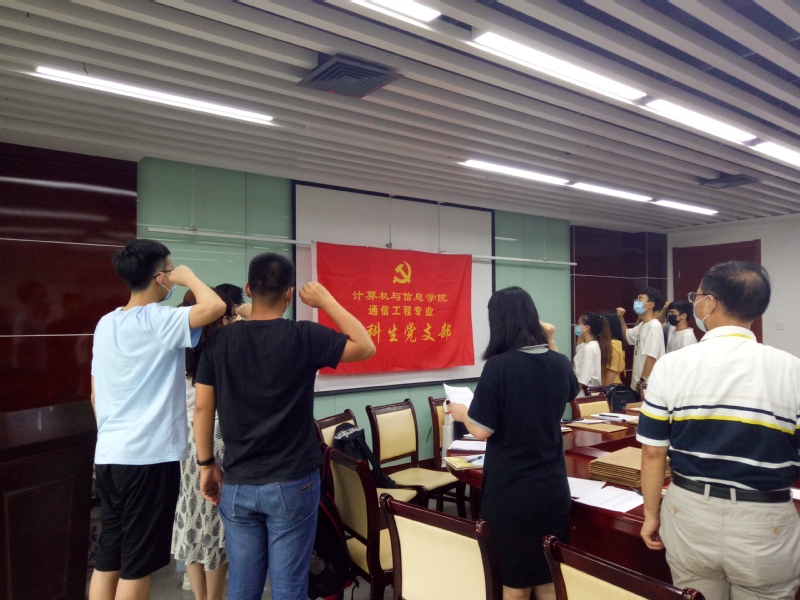 十名同志在支部书记的领誓下进行了庄严的入党宣誓,表达了为共产主义事业奋斗的决心。