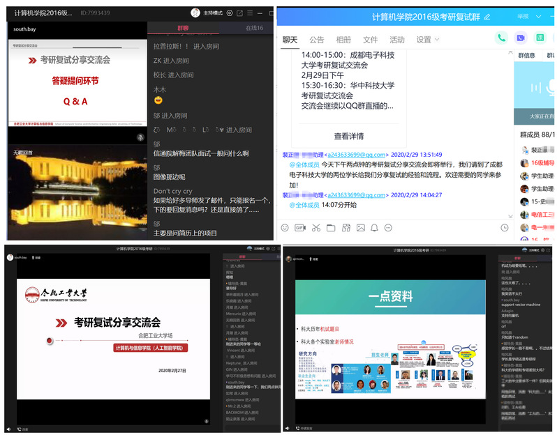 线上开课第二周,以提升考研复试能力为专题的4场空中课堂《考研复试经验分享》开讲,分别是“中国科学技术大学”专场、“成都电子科技大学”专场、“华中科技大学”专场和“91网址