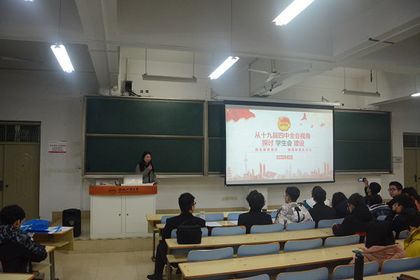 活动在温暖的总结视频中拉开了帷幕,黄晨老师为本次活动做开场致辞,她对学生会全体干事提出了“聚是一团火,散是满天星”的殷切期盼,并从十九届四中全会的角度出发为学生会的工作点明方向。之后,学生会各个中心主任依次上台就这一学期的工作情况做出总结,对下一学期学生会的工作开展做出了细致的规划。总结环节后,干事们为各中心主任送上了精心准备的惊喜,学生会点滴的感动汇成了暖流,在学生会这个家庭里缓缓流动。