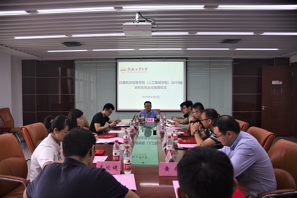 (人工智能学院)2019级本科生班主任的决定》,同时为共计十名班主任颁发聘书。随后,年书记对与会班主任进行了总体工作布置和要求,要求全体班主任能够端正态度,找准定位,与辅导员老师相互配合,发挥自身优势,从低年级抓起,加强对本科生专业学习、心理健康、意识形态等方面的关注和引导,将“开班会”,“进宿舍”变为常态化工作,真正将立德树人贯穿教育教学全过程。