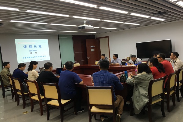4月25日下午,在计算机学院会议室信号与信息处理党支部面向电子信息工程系全体教师开展“课程思政”专题讲座。专题讲座由党支部书记张海燕老师主持,主讲董张玉老师受学院委派于2019年3月底参加了全国高校课程思政培训。本次专题讲座,董老师向参会老师们讲解了从“思政课程”到“课程思政”的建设思路和建设实践路径,强调习近平总书记提出“课程思政”建设对高校坚持社会主义办学方向、落实立德树人根本任务、确保育人工作贯穿教育教学全过程具有重要意义。