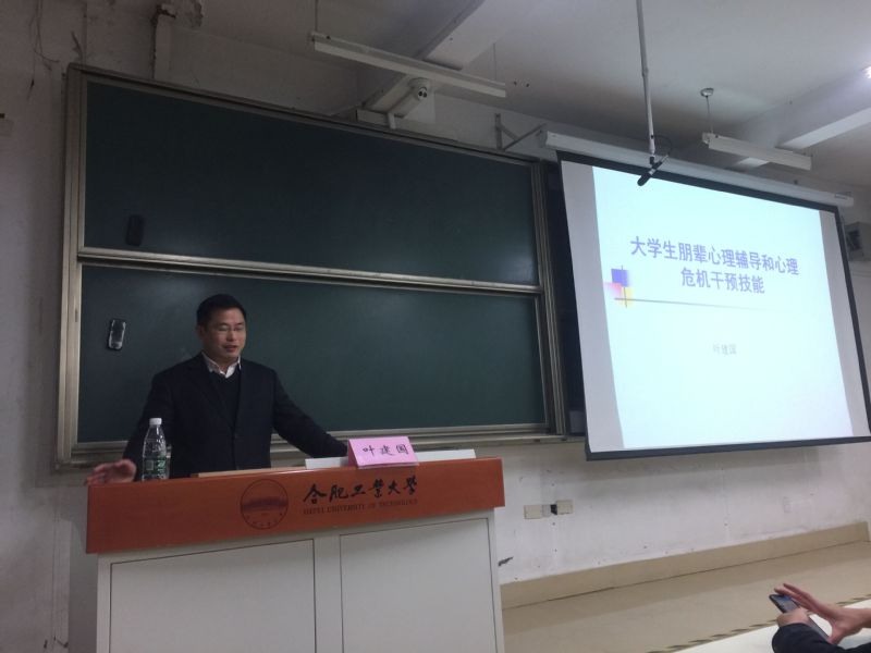 (人工智能学院)承办的《大学生朋辈心理辅导技巧与方法》专题培训在翡翠湖校区五教101召开。安徽医科大学心理健康教育和辅导中心专职咨询师叶建国担任主讲,学院发展辅导中心老师、本科生心理骨干、寝室心理联络员、研究生代表等200余人参与培训。
