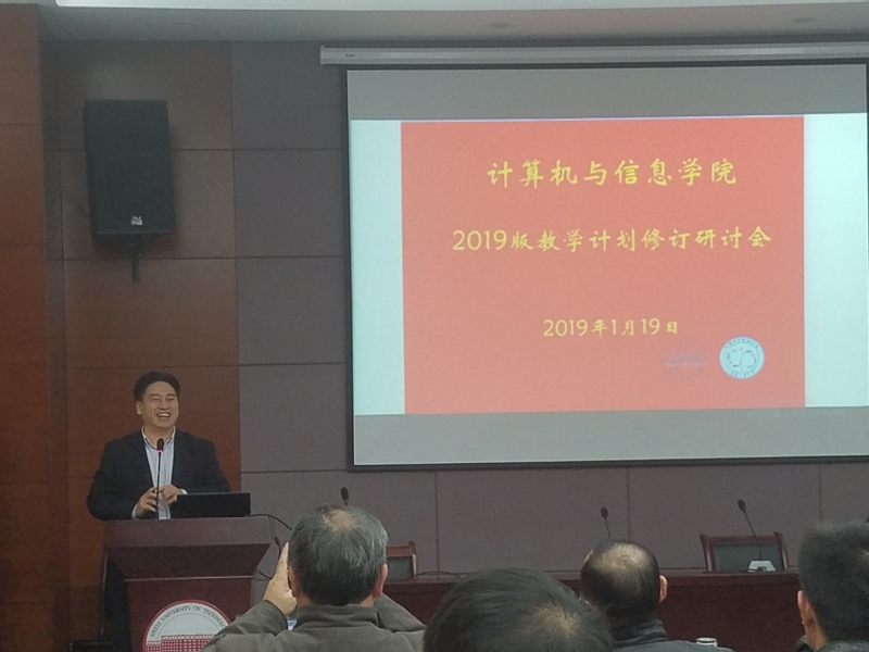 会议第二部分吴共庆、胡东辉、魏振春、孙晓、孙锐、齐美彬和郎文辉七位专业负责人分别就计算机科学与技术、信息安全、物联网工程、智能科学与技术、通信工程、电子信息工程和电子信息科学与技术七个专业的培养计划修订方案和后续建设安排进行了一系列介绍和汇报。