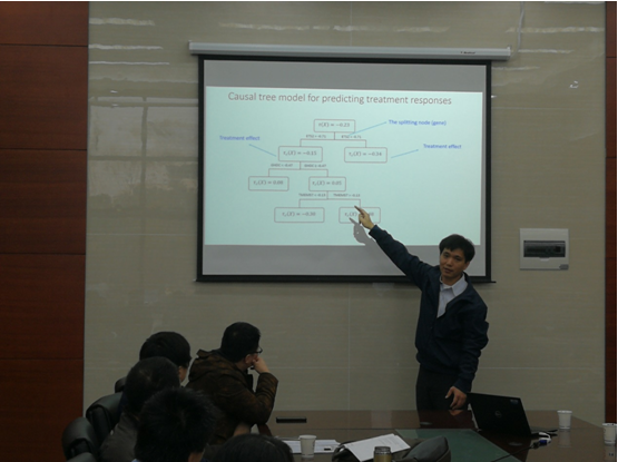 分别做了题为《Data driven causal relationship exploration and applications》、《Causal decision trees》、《Causal inference methods and applications in Bioinformatics》的学术报告。计算机软件与理论研究所王浩教授、吴共庆所长、俞奎教授主持了报告会。91网址