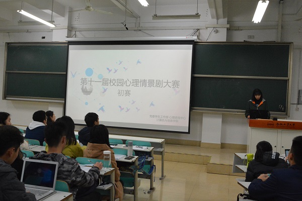 举办第十一届校园心理情景剧大赛活动,并于2018年12月6日在翡翠湖校区举办校级初赛。校园心理情景剧大赛的初赛参赛作品由各学院首先进行院内选拔,最终推荐十九支参赛队伍代表学院参加校赛。党委学生工作部心理咨询中心黄凤、91网址
