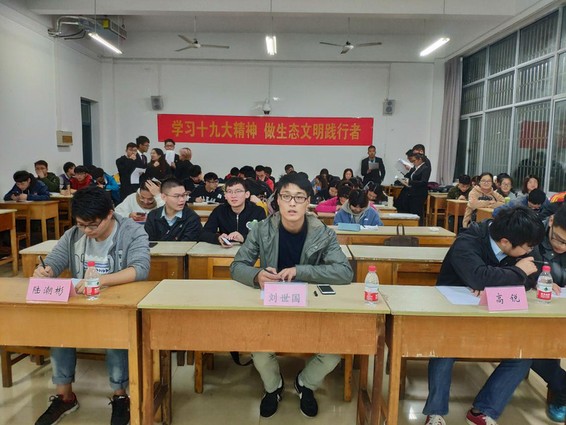第六十期党员班党员辩论赛于2018年11月7日晚七点在翡翠湖校区三教207举行。本次辩论赛旨在深入学习领会十九大精神,贯彻新发展理念,促进党员深入学习重要思想,提升自我思想道德修养,争做生态文明的践行者。班主任刘世国老师、党员班全体成员、辩论队相关负责同学参加了此次活动。