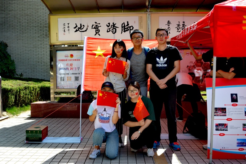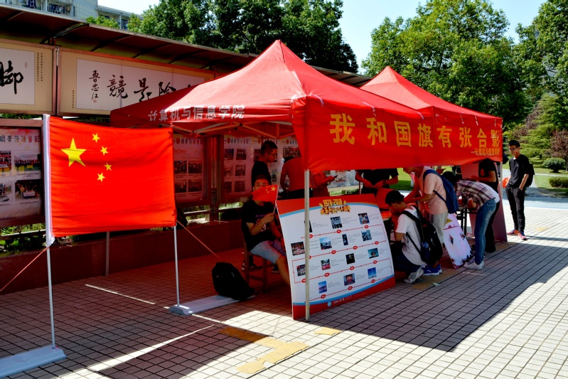 基层组织建设中心于2018年9月30日中午在翡翠湖校区第一食堂旁开展了“我与国旗有张合影”特别活动。