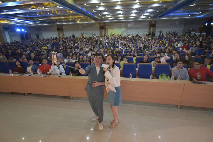 在翡翠湖校区图书馆报告厅举办“《皮囊》作者蔡崇达读书交流会”活动。此次活动面向全校师生,共计500余人到场聆听、学习和交流。
