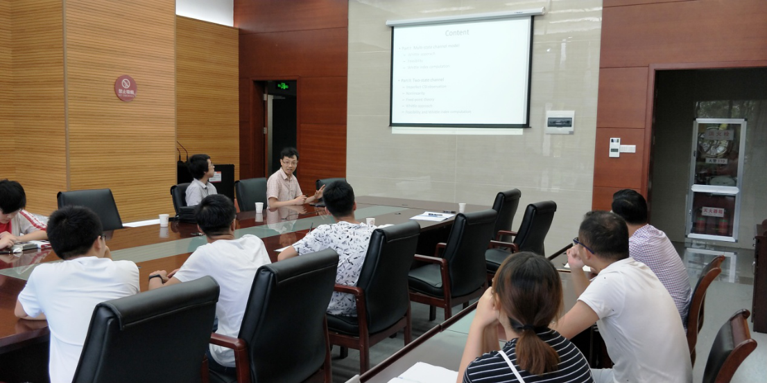翡翠湖校区翡翠科教楼A座第一会议室做了题为“基于无休多臂机的机会访问:可行性和因子策略”的报告。学院十余名教生克服台风与暴雨影响、前来参加了此次报告会。