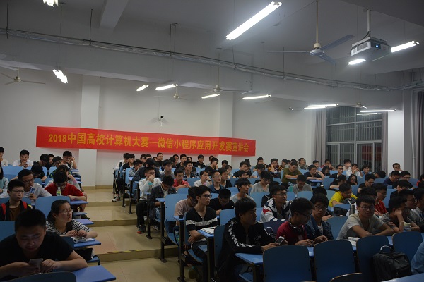 于4月27日在翡翠湖校区举办微信小程序应用开发赛宣讲会,微信小程序产品经理张维、微信商务经理朱世威及学院相关负责老师出席本次活动。