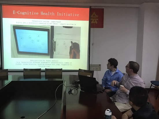 报告后,与会师生就声音处理问题和Ryan及Ben展开了讨论。最后,Ryan和Ben表示美国波士顿大学认知评估团队希望与本校老人福祉实验室研究人员持续合作。