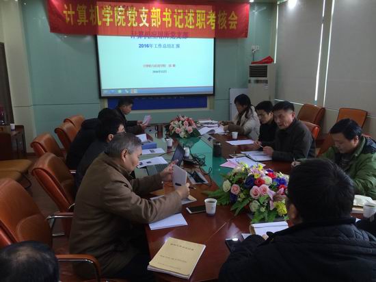 2016年12月29日下午,学院“2016年度教工党支部书记述职考核会”在科技楼516会议室召开,会议由院党委书记祖权主持,院党委委员、各教工党支部书记参加了会议。