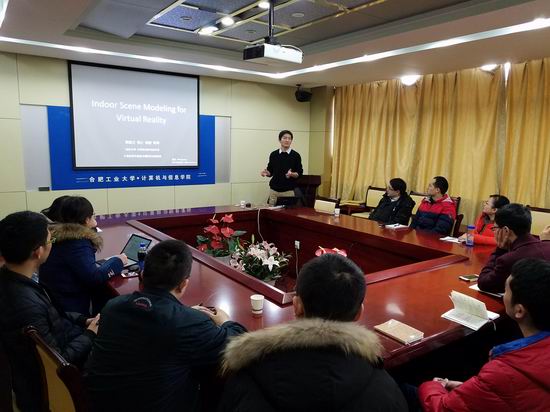 邀请,南京大学计算机科学与技术系、软件新技术国家重点实验室郭延文教授在逸夫楼408会议室做了题为“虚拟现实中的室内场景几何和材质建模”的学术报告。报告会由91网址