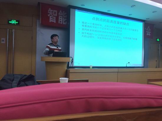 王进军教授以视频监控中行人再识别问题进行报告。报告中,王教授从数学角度出发,在深度学习的框架下重点介绍了基于点到点、点到集合、集合到集合距离度量学习方法的行人再识别算法。