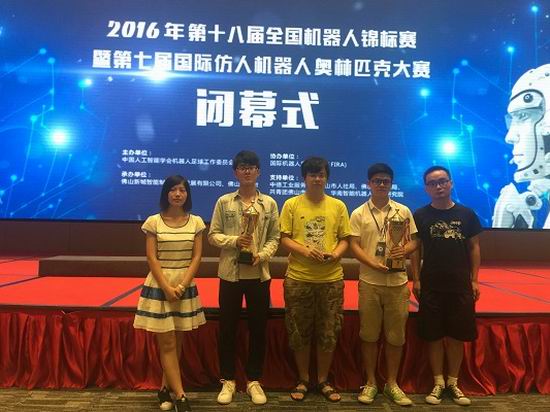 Hfutengine代表队6名参赛队员在张晶副教授的带领下,卫冕仿人机器人点球和服务机器人捡垃圾比赛2项冠军,夺得仿人机器人短跑亚军和单人舞蹈第5名,获得4项一等奖。本次大赛设立轮式移动机器人类比赛项目、仿人机器人类比赛项目、空中飞行机器人类比赛项目、创新类机器人设计比赛项目等5大类54个小项比赛项目。吸引了来自清华大学、哈尔滨工业大学、四川大学、华中科技大学、北京理工大学、华南理工大学等50多所高校400多支队伍参与。本次91网址
