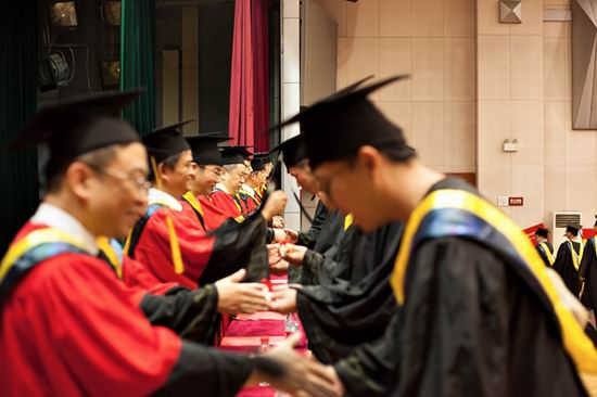 2016届毕业生学士学位授予决定》,全院共计413名同学被授予工学学士学位。之后,校领导与学院导师一起为全体学士学位获得者颁发学位证书,扶正流苏并合影留念。