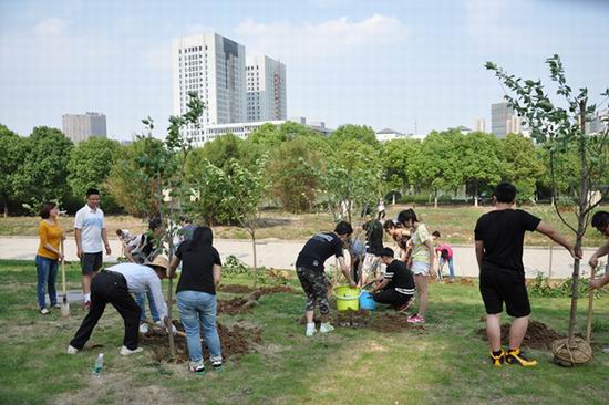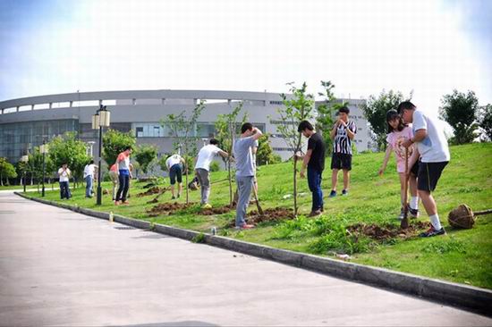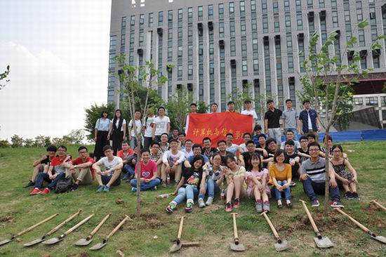 2012级毕业生在翡翠湖校区逸夫建筑艺术馆楼下绿地处举行感恩母校集体植树活动,学院2016届40余名毕业生代表和相关老师参加了此次活动。