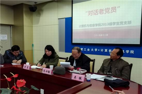 开展“对话老党员”主题座谈会。校关工委朱功勤教授和校党建组织员吴挺老师应邀参加。屯溪路校区全体学生党员参加了本次座谈会。
