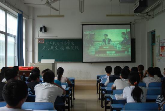 第53期入党积极分子班于6月15日下午3点在翡翠湖校区四教208成功举办了“影党史,映雄魄”的爱国主题教育活动。活动由2014级辅导员宋燕老师主持,第53期入党积极分子班的全体成员参与了本次活动。
