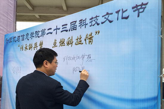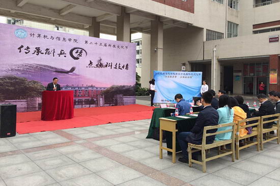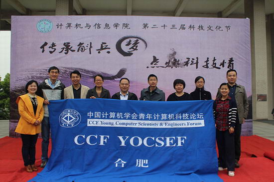 第23届科技文化节在翡翠湖校区一食堂广场拉开帷幕。校团委、学院相关负责人、中国计算机学会青年科技论坛(CCF YOCSEF)合肥分论坛成员代表出席开幕式。