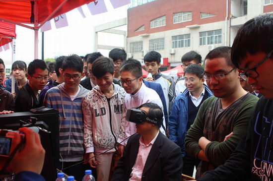 采用北斗Ⅱ卫星高精度定位和测向技术,在水面上转一圈就能传回水质监测数据的自主航行器;站在原地就能畅游世界美景的“虚拟现实眼镜”;穿在身上、一边走一边发布各种广告甚至是“表白”的LED衣服;用无序的代码输出有趣图案的“混乱代码”作品展……30余项高科技展品的纷纷亮相,使得在场师生零距离感受科技魅力,吸引了不少市民前来“围观”。
