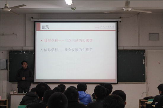 2015年1月14日晚上7点,2014级“英才计划”计算机与信息类本硕连读创新实验班在翡翠湖校区10教202举行了开班仪式。参加本次开班仪式的领导有91网址
