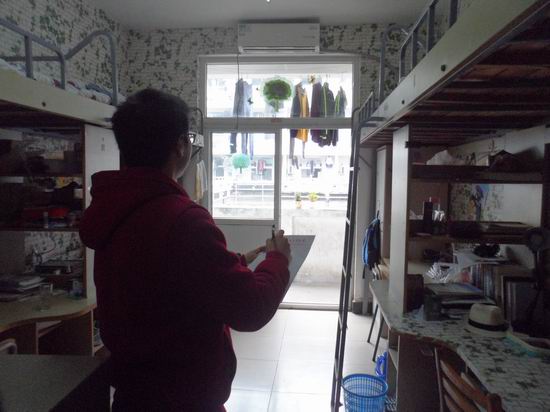 在14级辅导员老师的带队下,由14级各班副班长和生活委员组成的临时检查小组兵分4组同时对男女生宿舍进行卫生大检查。在逐一检查学生宿舍的过程中,着重排查安全隐患,查看宿舍内务整理、宿舍卫生、大功率电器和学生电脑使用情况。针对发现的有少数宿舍卫生状况较差、安全意识较为薄弱的问题,检查组对相关同学进行了提醒和整改要求,杜绝重大安全事故发生。