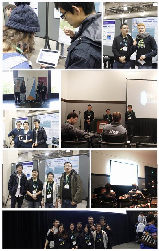 我校学子的参赛作品是合成生物学辅助设计软件BioDesigner。团队成员收集了iGEM往届的模型数据,通过对这些模型数据进行分析,使用协同过滤算法和关联规则算法,来为新模型的设计推荐组件,是iGEM竞赛有史以来首个具有生物组件推荐功能软件。通过与众多其他队伍的交流,获知我校队伍的软件极好地解决了合成生物设备设计过程中组件难以搜寻的难题,具有很高的实用性,很多队伍纷纷表示想要使用我校队伍的软件,来降低他们明年参与该赛事的工作难度。