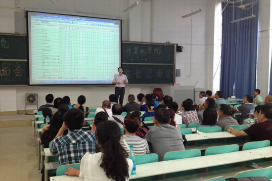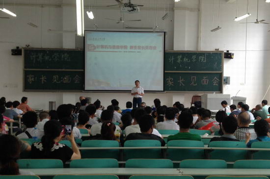 2014级新生家长见面会在翡翠湖校区一教102举行,会议由91网址