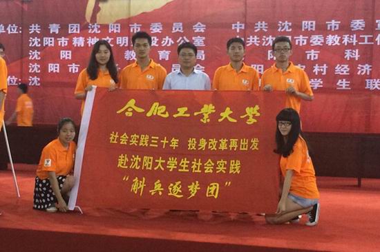 为贯彻落实党中央“受教育、长才干、作贡献”的社会实践指导方针,学习和领会老工业基地改革发展取得的丰硕成果,号召更多的大学生积极投身社会实践,7月17日,应共青团沈阳市委员会邀请,由计算机学院与经济学院学生组成的“斛兵逐梦团”暑期社会实践团队赴沈阳大学参加了“社会实践三十年,投身改革再出发”暑期社会实践出征仪式。校团委书记陈文恩出席本次活动。