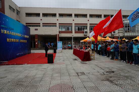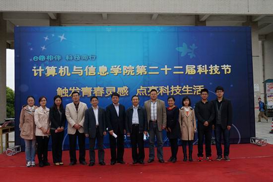 本次科技节在“e路相伴,科技同行”的大背景下,以“触发青春灵感,点亮科技生活”为主题,从4月13日开幕式至5月31日闭幕式,历时一个半月,在此期间,将举办囊括参观体验类、比赛竞技类、科技服务类共计11余项活动,举办科技讲座共计10余场,全面提升广大同学的科技素养与动手实践能力。开幕式上,合肥市科协主席金维平致辞,在充分肯定了科技节的内涵的基础上,鼓励同学们积极参与到科技创新、科技实践当中去,努力提升自己的科学素养与创新能力,并预祝本次科技节取得圆满成功。随后,校团委书记陈文恩指出:自主创新能力成为国家竞争力的核心,培养学生科技创新素质是学校人才培养目标的重要内容,我们要认真总结经验,不断开拓创新,坚持不懈地办好一年一度的大学生科技文化节。希望同学们能够借助科技节这个平台,善于思考、勇于创新、不断进取,更好地投入到专业学习和科技创新工作中,促进资源整合,展示先进科技,推动科技创新。学院科技与创新协会主席吴晶晶详细介绍了此次科技节的相关情况。最后,嘉宾寄语科技节并合影留念。