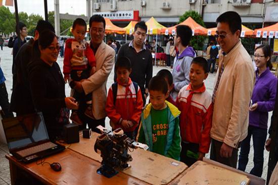 分布式控制实验室、计算机应用技术实验室等6个实验室的30余项学生自制高科技展品纷纷亮相科技节开幕式,有飞思卡尔智能小车,机器人舞蹈展,意念控制小车,智能追溯系统,航模等展品,有移动4G,火狐电脑小插件,体感游戏机等现场体验品,还有装机大赛,混乱代码大赛等项目比拼。