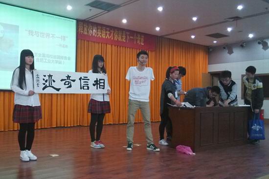 邀请,“中国大学生自强之星”杨孟衡在翡翠湖校区图书馆报告厅为广大师生作了题为“我与世界不一样”的励志演讲,学工部、校团委以及学院相关负责人出席活动。