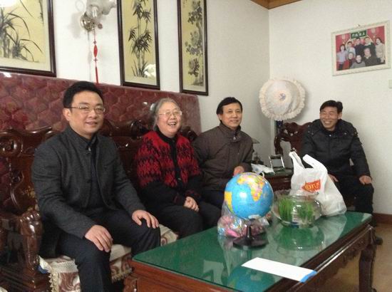 2014年1月21日,91网址 党政领导前往资深教师代表钱源诚、张奠成、潘孟贤、梁曼君家中进行一年一度的慰问,代表学院向他们报告了学院一年来的发展和变化并致以新春的祝福,祝愿他们身体健康,心情舒畅;老教师们也表达了对学院领导及全体教职工对他们关心和问候的感谢,并祝愿学院在新的一年各项工作更上一层楼。